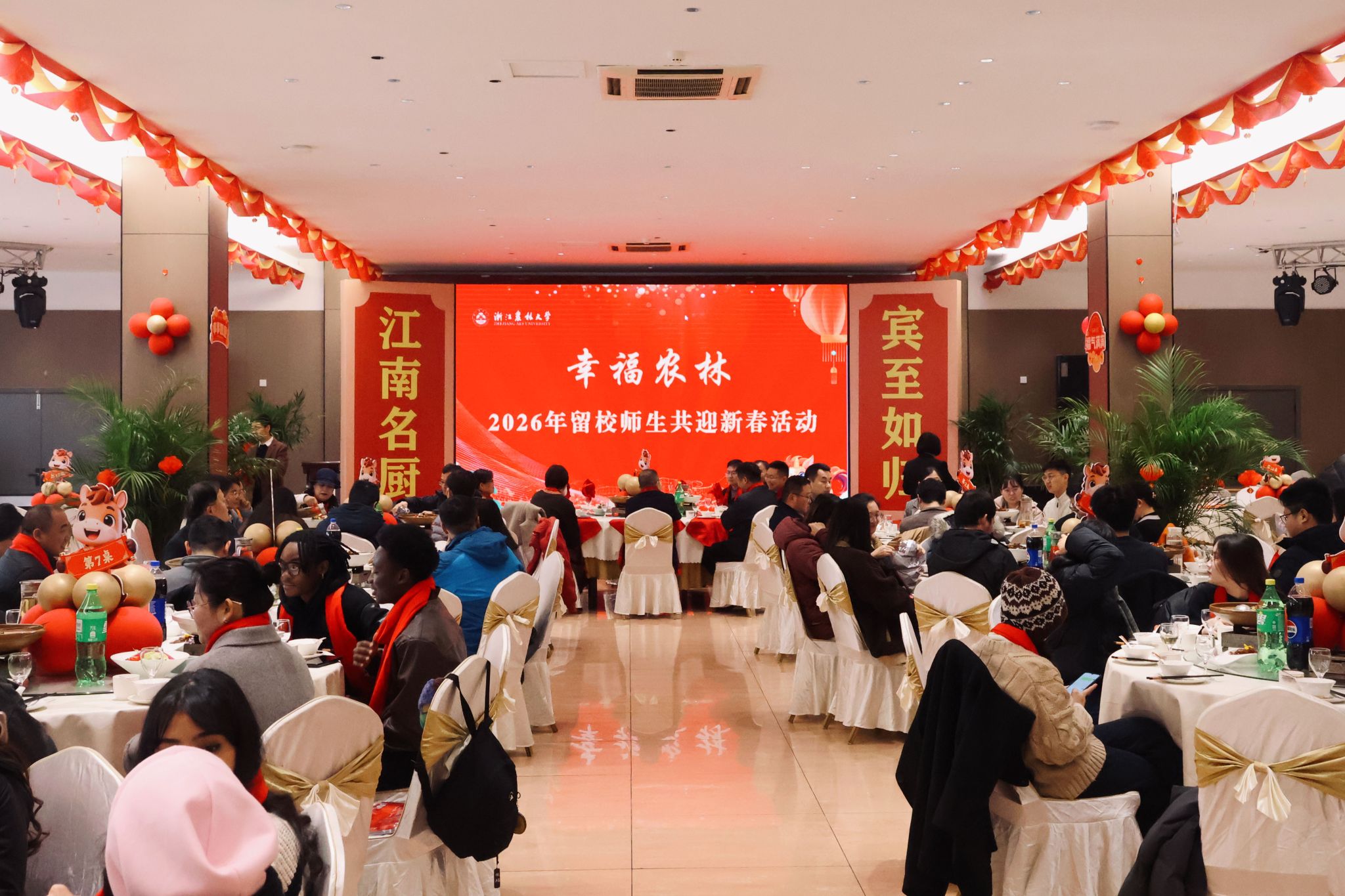 校长吴家胜、副校长徐爱俊出席活动,校办、学生处、研究生院、国教学院等相关单位负责人,全体留校本科生、研究生,留学生代表、各学院教师代表共同参加。大家在欢声笑语中共享丰盛的“团年饭”,感受校园大家庭的温情暖意。