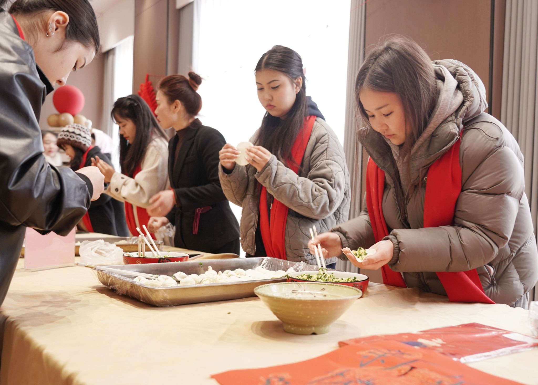 骏马迎春,年味渐浓。2 月 13 日,农历腊月廿七,学校在西径餐厅三楼大厅举办留校师生“团年饭”活动。校领导与留校师生欢聚一堂,一同包饺子、写春联,同举杯、送祝福,共话团圆情谊,共迎丙午马年新春。