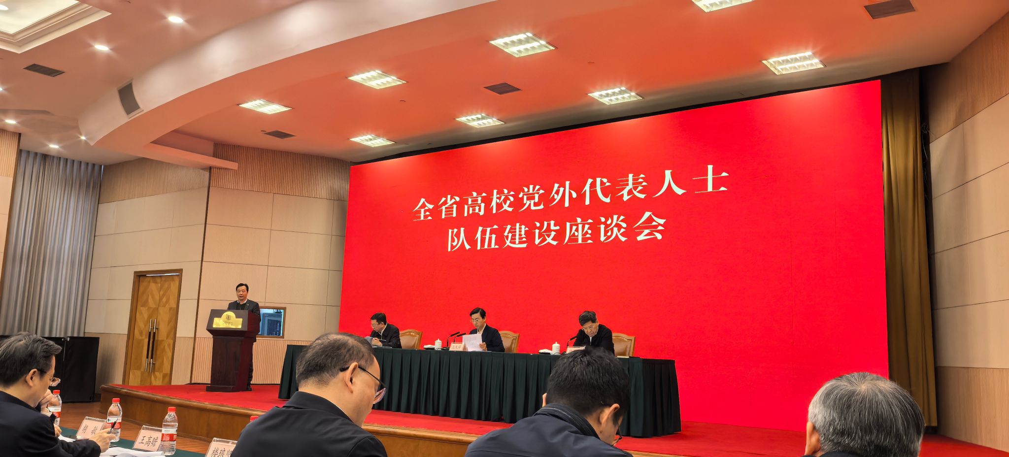 12月25日,全省高校党外代表人士队伍建设座谈会在杭州举行,省委常委、统战部部长王文序出席会议并讲话,省委教育工委副书记、省教育厅厅长陈春雷主持会议,校党委副书记、统战部部长倪建均参加会议,并作为高校代表进行交流发言。
