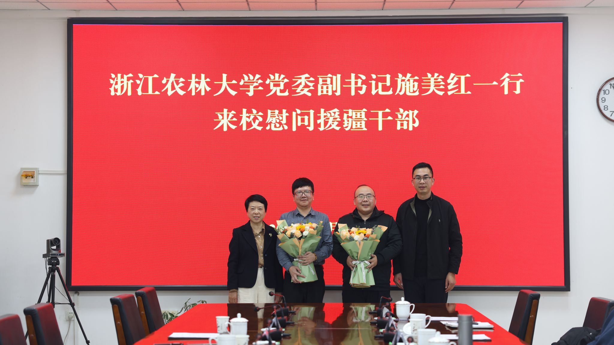 近日,校党委副书记施美红赴新疆理工学院,看望慰问援疆干部周宁、许赛,详细关心询问了两位同志的工作和生活情况,对他们勇担使命、无私奉献的精神给予充分肯定,鼓励他们继续发挥桥梁纽带作用,加强两校合作联动,深入对接帮扶举措,助力各项支援措施落实落地。