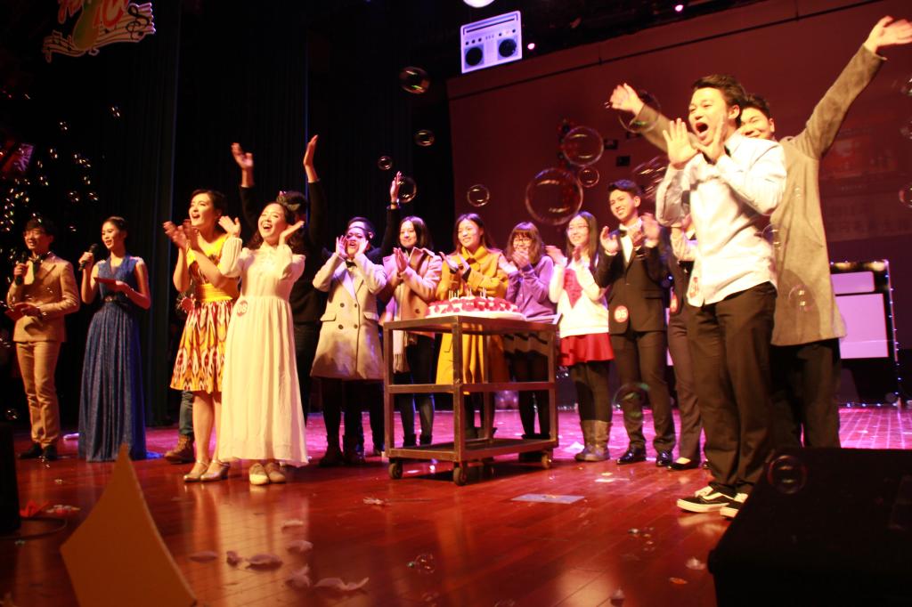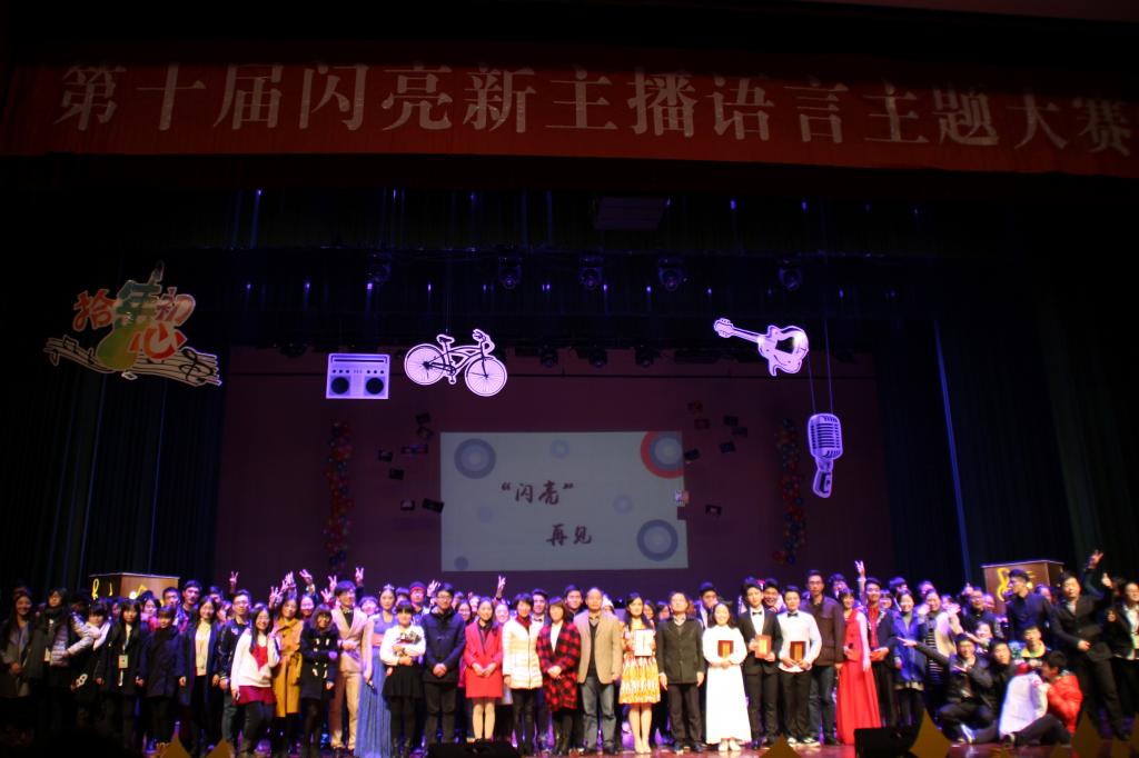 在各大高校电台致电声中,晚会拉开了帷幕。随着10年留声机的打开,闪亮10强闪亮登场,舞动青春,共迎“拾年•初心”。在闪亮十年晚会的现场,通讯社4届社长共同登台为闪亮送祝福,开启“闪亮”之行。
