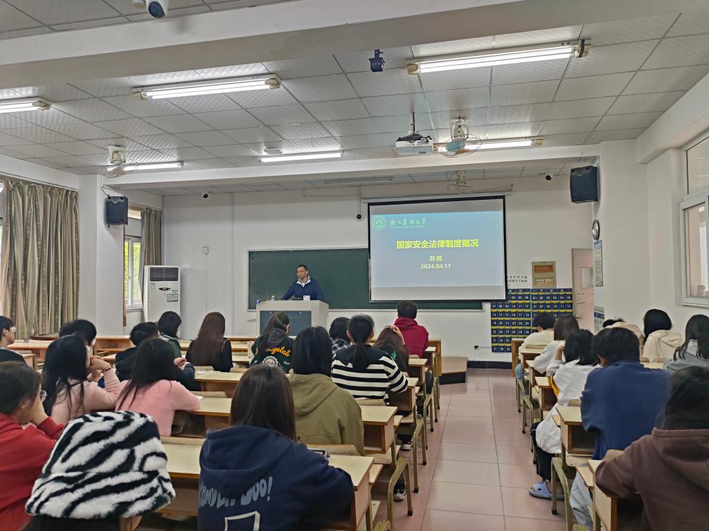 4月11日下午,文法学院在教学主楼201开展国家安全法治教育报告会,邀请到法学专业负责人刘辉老师作报告,学院各年级学生近百人参加。