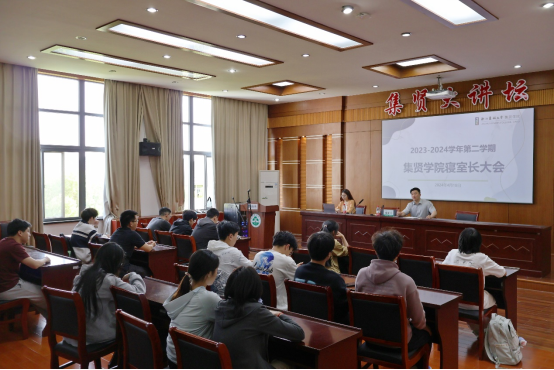 4月18日,集贤学院在学1-401集贤大讲坛召开2023-2024学年第二学期寝室长大会。