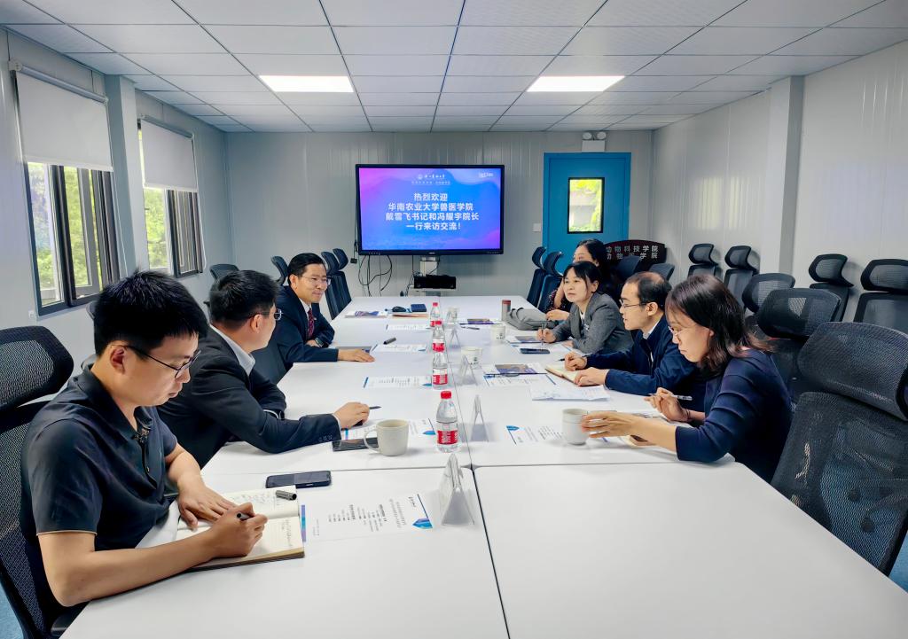 5月9日,华南农业大学兽医学院书记戴雪飞、院长冯耀宇一行到动科动医学院交流,名誉院长方维焕,校党委委员、动科动医学院院长宋厚辉等领导参加座谈。