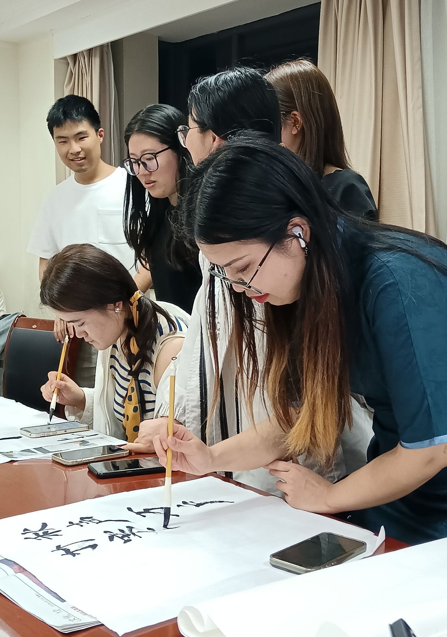 活动伊始,支部副书记向全体党员详细介绍了此次主题党日的核心内容,并激励大家将竹子品性和廉洁初心融入到每一笔每一划之中。党员们踊跃投身于创作中,有的专心致志描摹竹字帖,有人挥笔泼墨书写赞美竹的诗句,还有人用毛笔勾勒出一幅幅栩栩如生的竹画卷。大家都相互欣赏着不同的作品,在书法和绘画的过程中,体悟竹子精神:坚持目标、坚定方向、笃定前行。