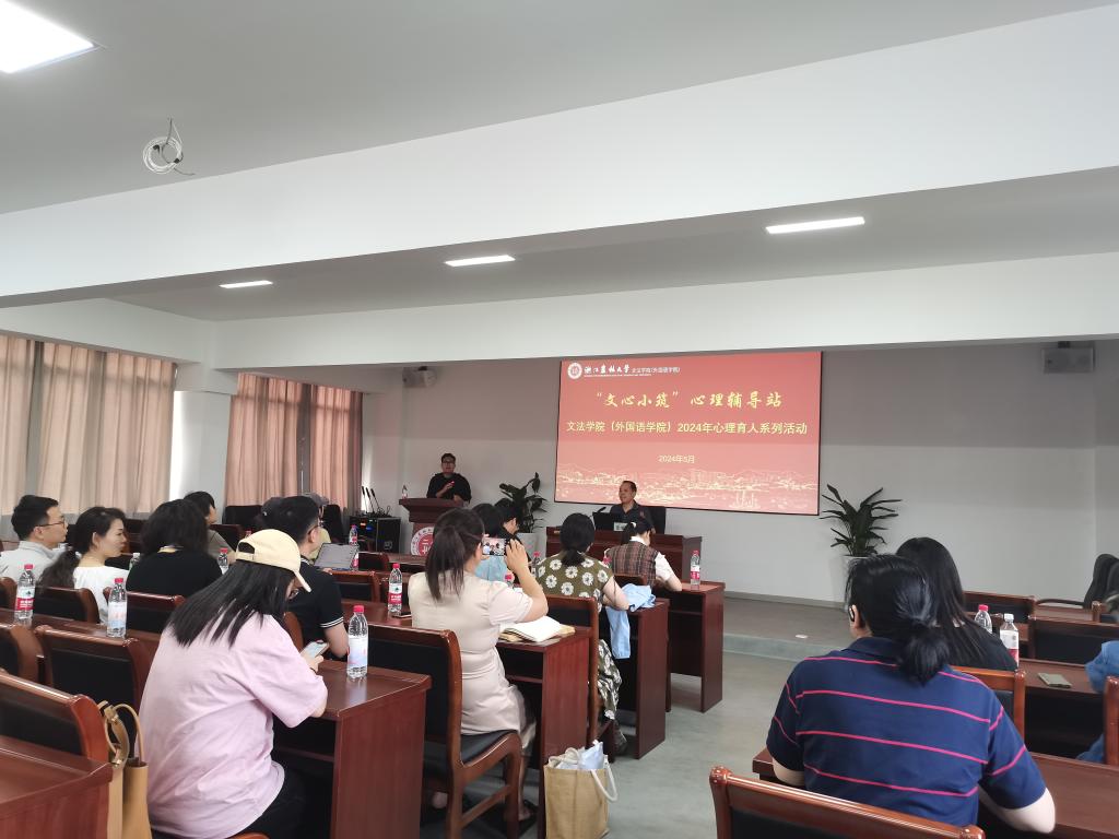 5月23日下午,文法学院心理辅导站在实验大楼502会议室举办“高校大学生心理危机识别及应对策略”培训活动。作为文法学院“文心小筑”心理育人系列活动之一,本次讲座邀请张敏生教授作为主讲,各学科负责人、导师和班主任参加培训。