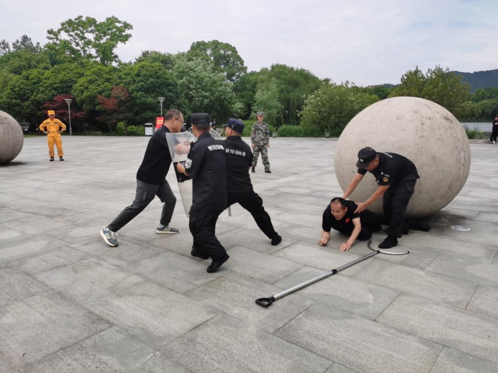 在开展溺水救援模拟演练时,参训人员系统学习了心肺复苏和落水人员施救的方法和步骤,进行了落水人员气艇救援演练。反恐模拟演练中,模拟了暴恐分子持械攻击人群,校园安保队员第一时间联动处置,将暴恐分子制服。