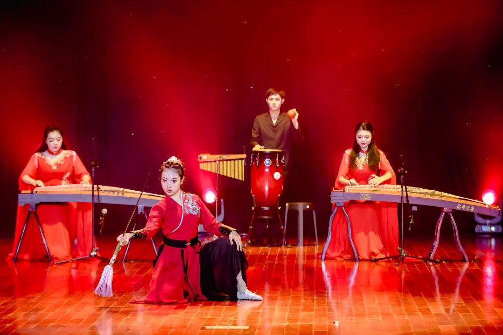 群舞《花瑶女》源自湖南湘西南腹地的瑶族舞蹈,生动展现了花瑶女的热情、奔放和勤劳,以及她们对美好生活的向往与追求;双人舞《雨后》把一对因贪恋落凡尘的青白双蛇演绎得媚态百生,旖旎曼妙、婀娜多姿;独舞《绿宝石》出自芭蕾舞剧《珠宝》,伴随着音乐旋律,绿宝石精灵翩然起舞,高贵、典雅、神秘的特征呼之欲出;《囍》《风声》《迦陵频伽》《Latino》等多风格、多舞种的剧目,为同学们带来了不同的视觉感受;群舞《能不忆江南》的一窥一探,举手投足间,尽展江南古典风韵。通过本场演出,在场师生充分感受到了舞蹈所蕴含的丰富内涵和文化底蕴。演出结束,现场气氛热烈,掌声经久不息。