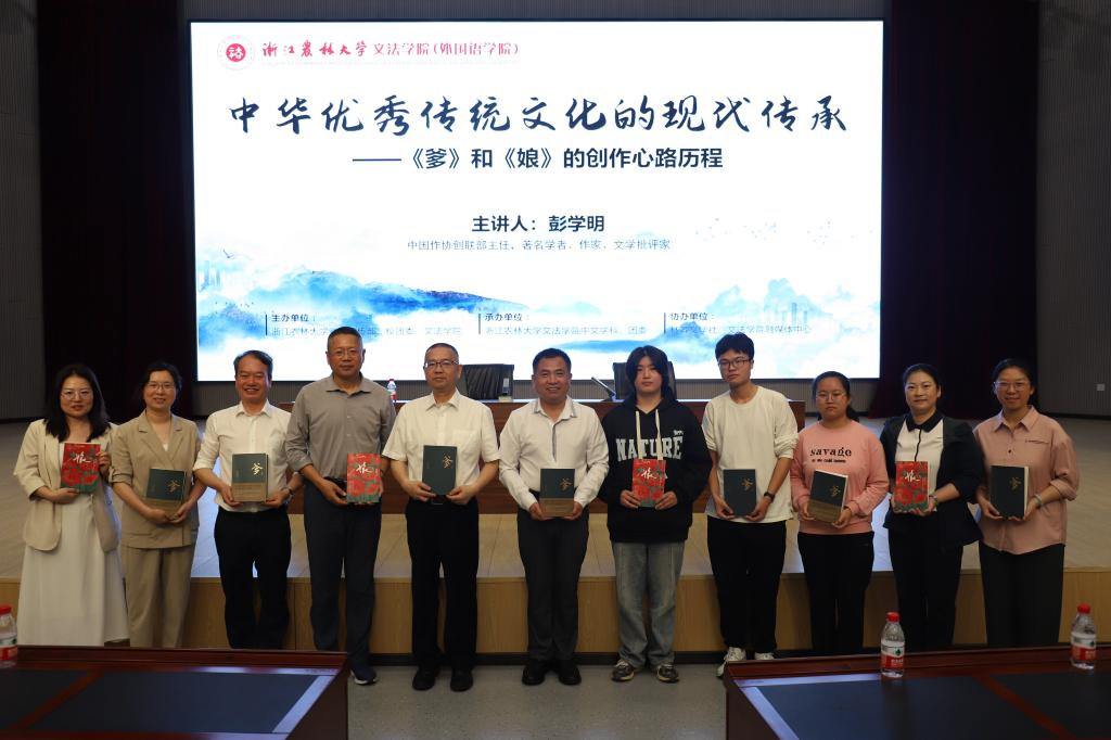 彭学明以“中华优秀传统文化的现代传承——《爹》和《娘》的创作心路历程”为题,分享创作心路历程。他指出《娘》立体呈现了平凡而伟大母亲形象,生动阐释了什么是“娘”、什么是“孝”、什么是文学形象魅力;《爹》重释了父亲在传统文化和家国情怀中的重要意义,是宏阔的湘西父辈史诗,更是中华民族的宏阔画卷、生生不息的人民史诗。讲座故事精彩、人生体会深刻,引起广大师生强烈共鸣。
