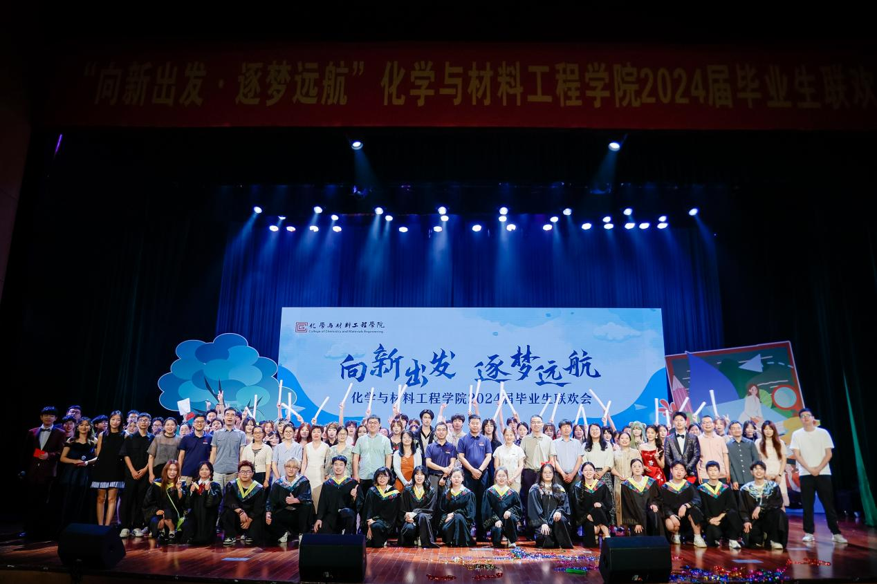 6月16日下午,化学与材料工程学院在活动中心影剧院举行了2024届毕业生联欢会。本次联欢会以“向新出发,逐梦远航”为主题,化材学院党政班子成员、毕业生班主任、导师、在校师生代表、全体辅导员以及兄弟学院团委代表和全体2024届毕业生共同参加活动。
