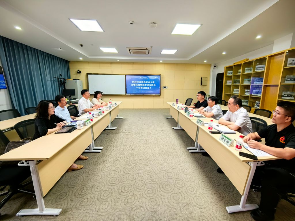 7月26日,青岛农业大学动物科技学院院长李光玉、党委书记展学斌一行到动科动医学院交流,校党委委员、动科动医学院院长宋厚辉及相关负责人等参加座谈。