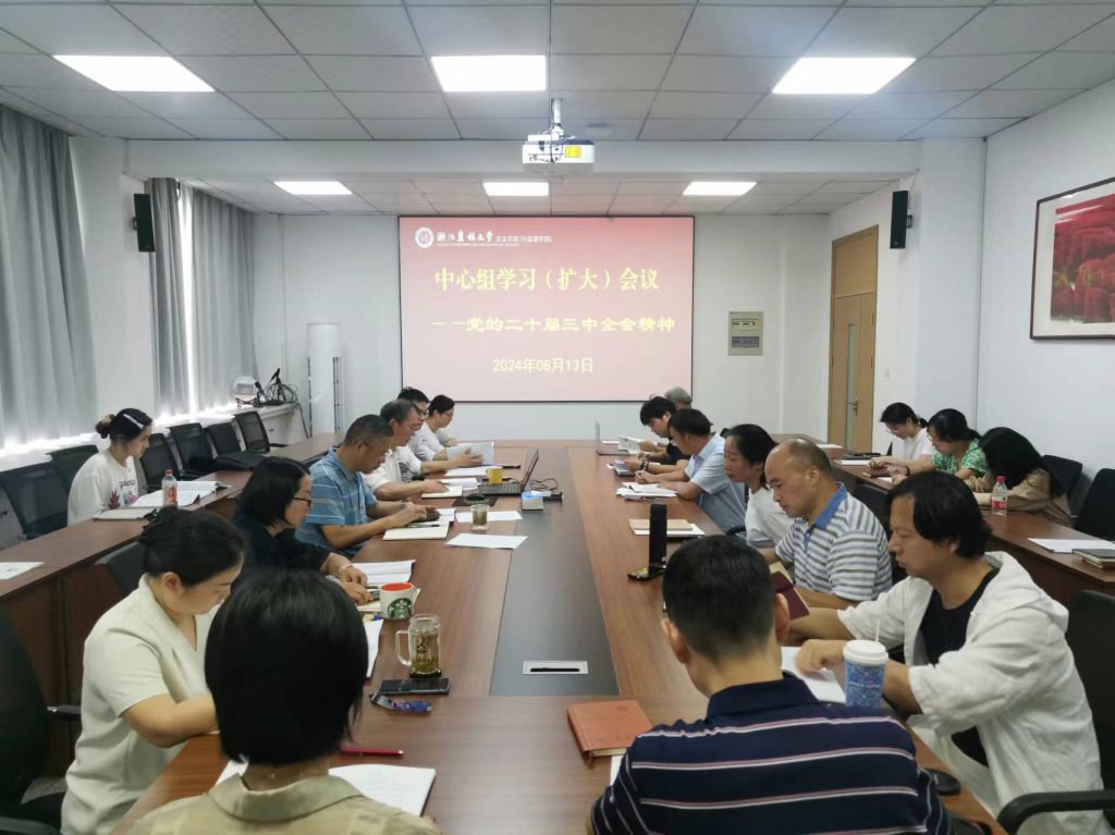 8月13日,文法学院在衣锦实验楼612会议室召开中心组学习扩大会议,专题学习党的二十届三中全会精神。学院中心组成员、师生党支部书记、群团部门负责人参加学习会。文法学院党委书记朱红东主持学习会。