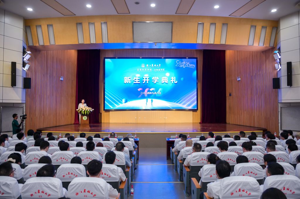 9月8日晚,动科动医学院2024级新生开学典礼暨“院长第一课”活动在图书馆第一报告厅举行,学院党政班子成员、高层次人才、学科专业负责人、新生班主任、新进教师等40余位教师代表,326名本科生、研究生新同学,60余名新生家长代表参加活动,活动由动科动医学院党委书记魏玲玲主持。