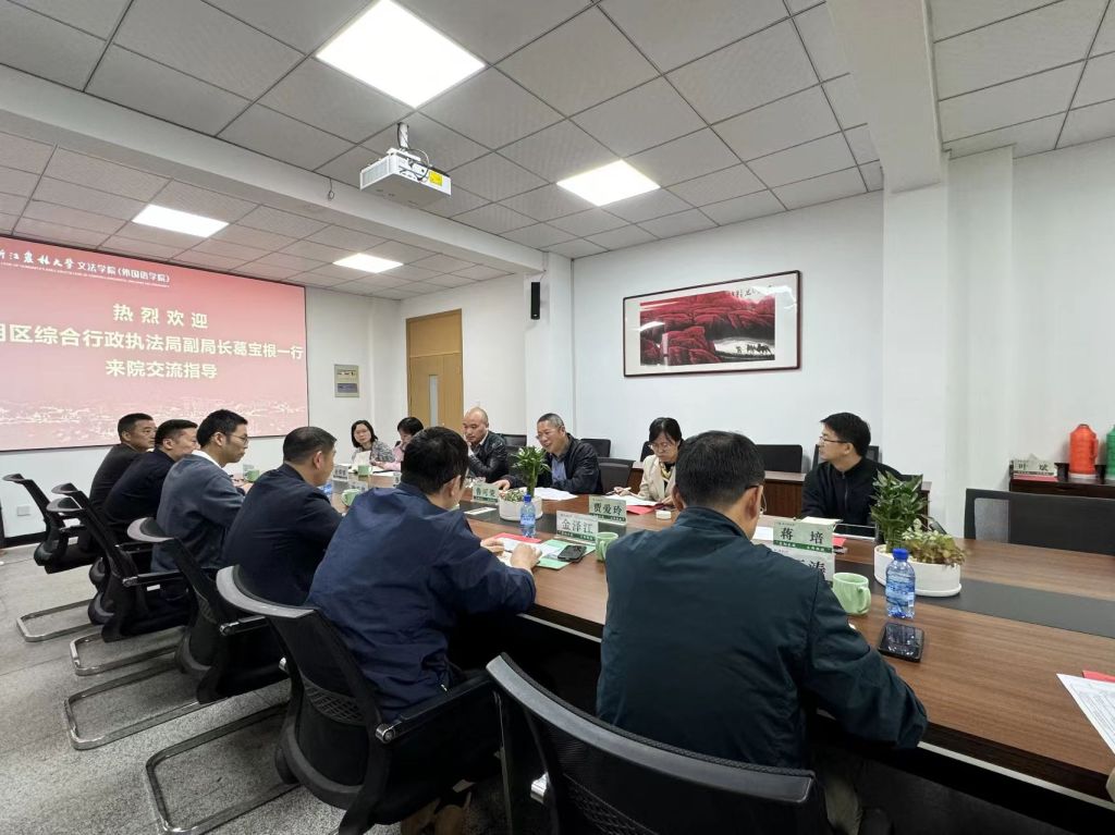 11月1日,西湖区综合行政执法局副局长葛宝根一行到文法学院交流。文法学院院长鲁可荣及有关学科负责人参加交流。