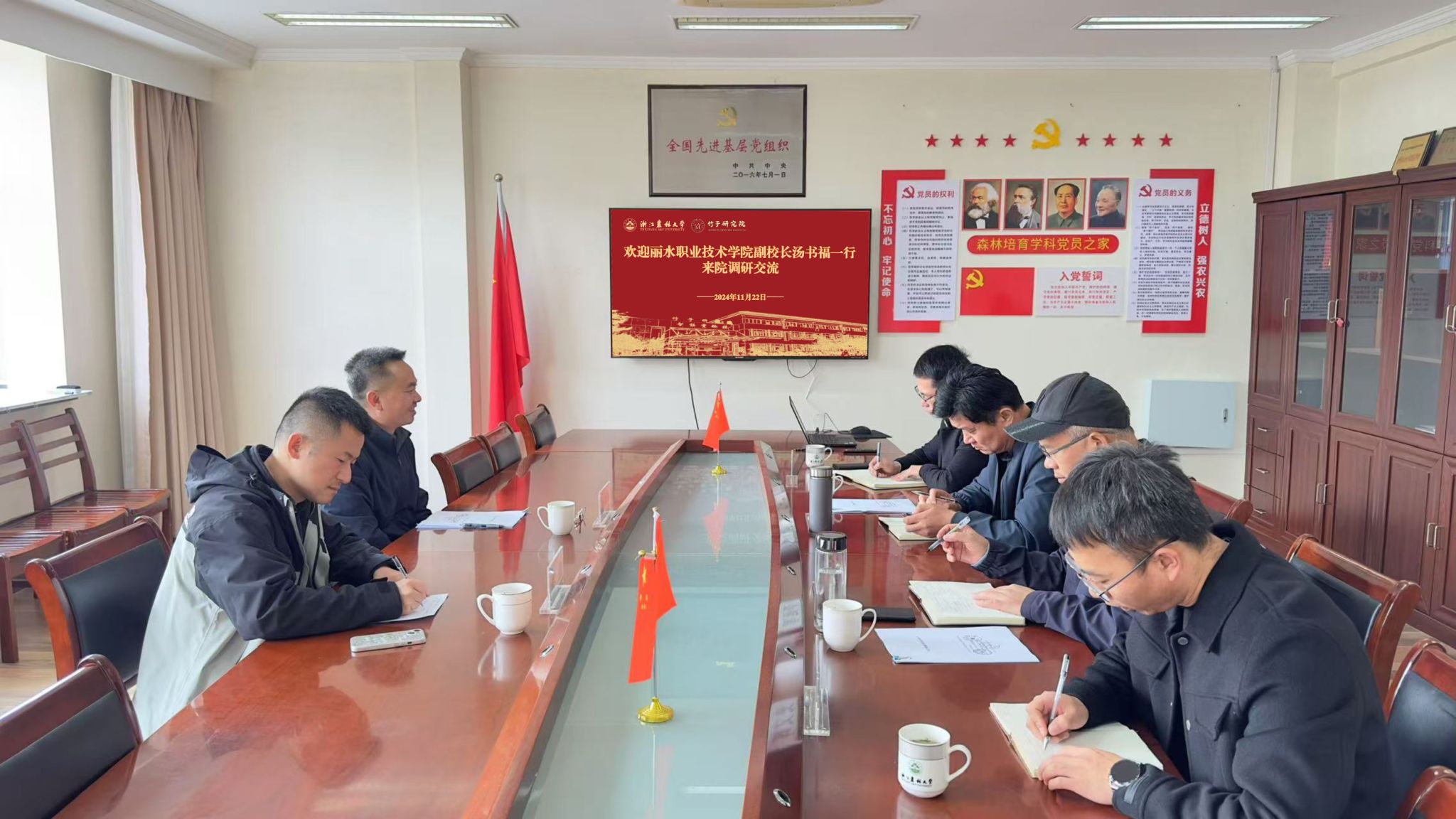 11月22日,丽水职业技术学院副校长汤书福一行到竹子研究院调研交流。