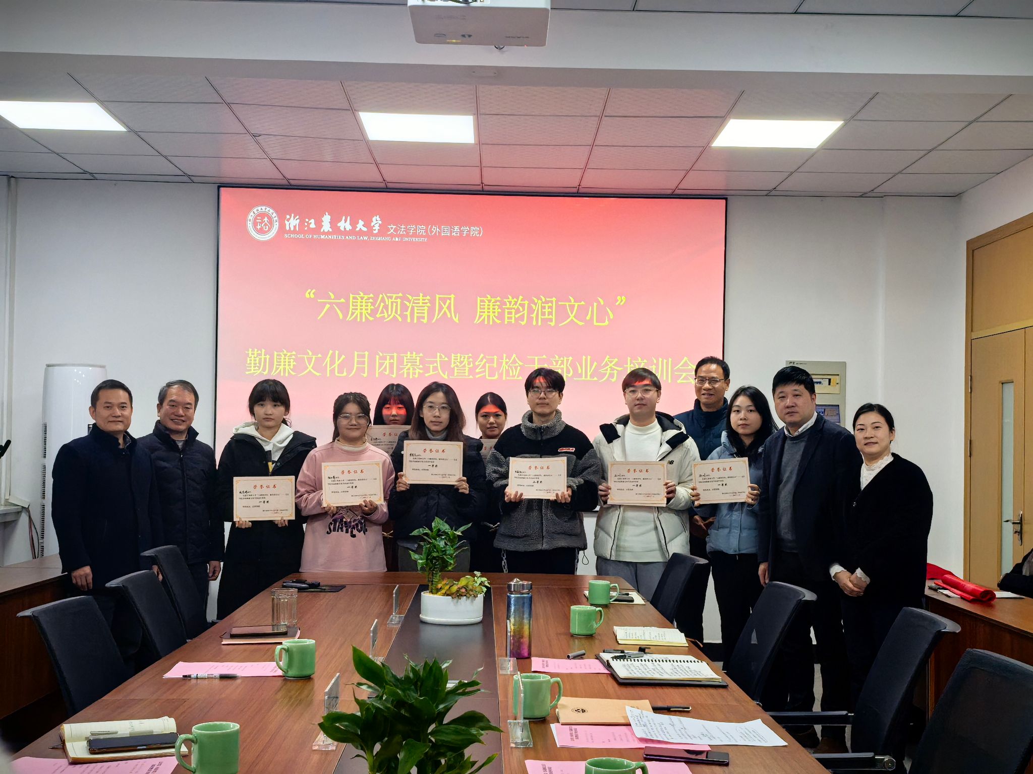 12月27日,文法学院举行首届勤廉文化月闭幕式暨纪检干部业务培训。校审计处、校纪检监察室、马克思主义学院、文法学院相关负责人,以及文法学院全体纪委委员、师生党员代表参加活动。