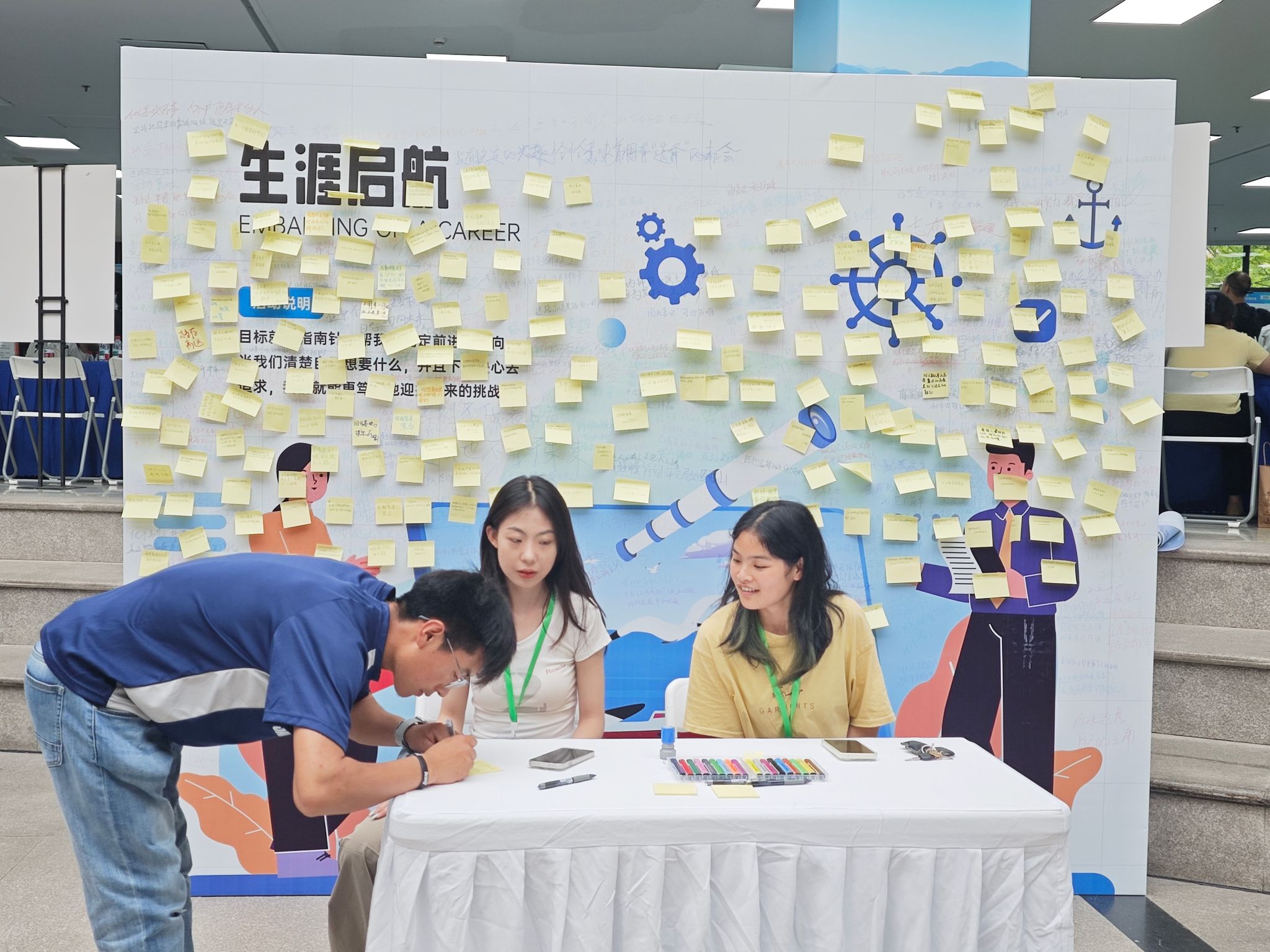 现场设立一站式就业服务区,邀请杭州市大学生就业创业师友计划导师为学生提供一对一简历优化和面试指导,引入“AI + 就业”平台,运用人工智能技术为求职者精准匹配岗位,还覆盖考研、考公、留学、政策咨询等,为学生提供全链条的就业服务。