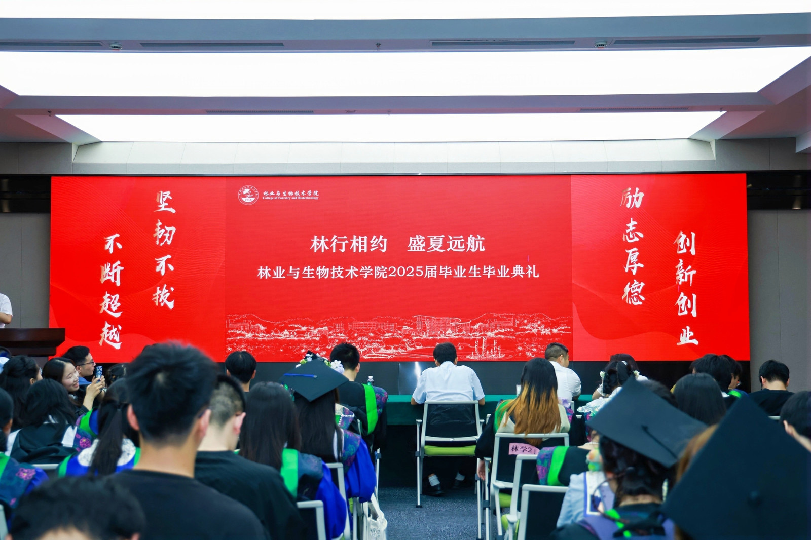 6月13日,林生院“林行相约,盛夏远航”2025届毕业生毕业典礼在全国重点实验室举行。林生院党委书记郑炳松、学院执行院长王正加等学院领导班子、各学科负责人、各专业负责人、导师代表、全体辅导员、各班班主任、2025届毕业生及家长、在校学生等参加典礼。