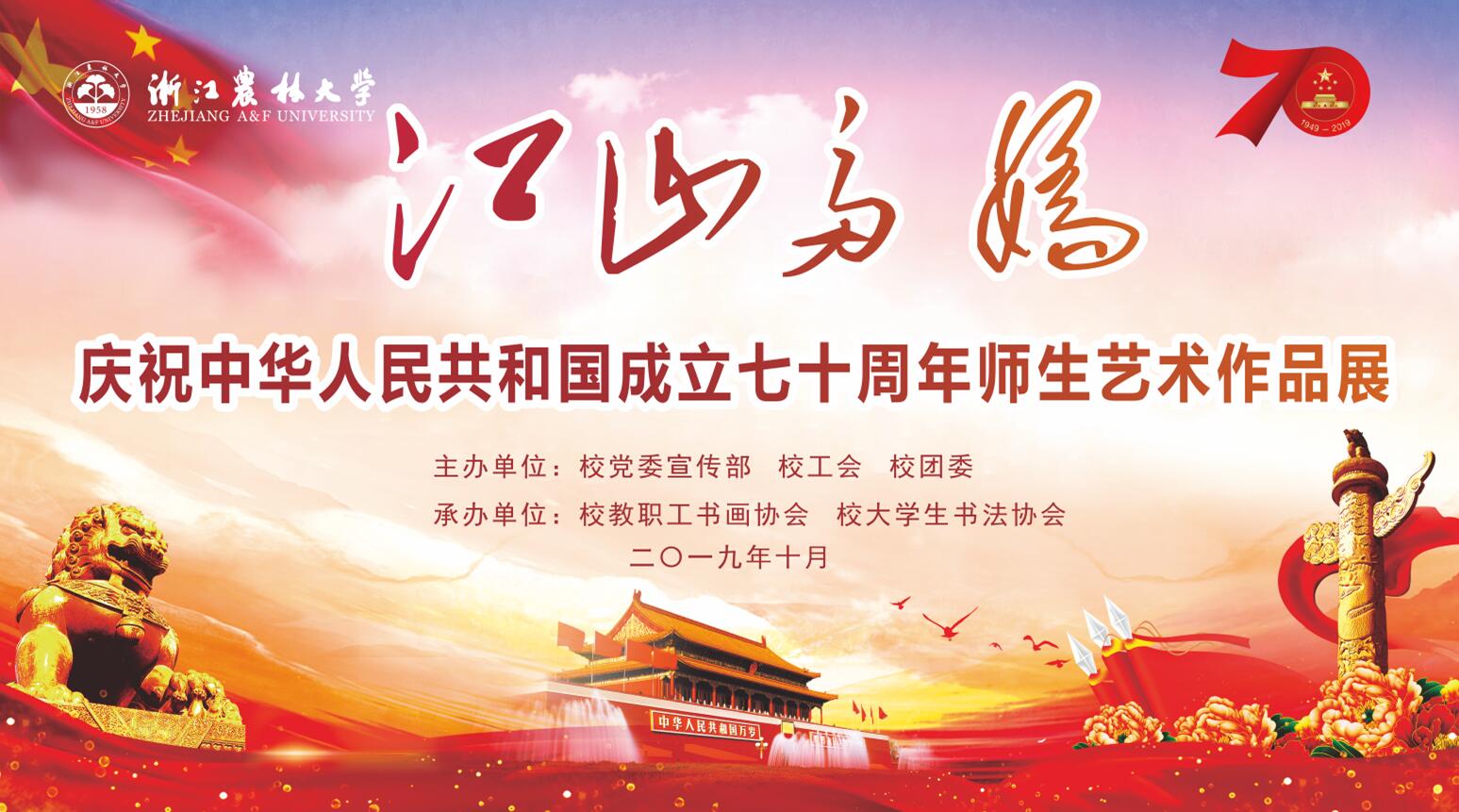 70年斗转星移,70年沧海桑田,中国人民在中国共产党的领导下披荆斩棘、风雨兼程,创造了举世瞩目的中国奇迹,中华民族走出了一条从独立到富强的复兴之路。在喜迎新中国成立70周年之际,为深入学习宣传贯彻党的十九大精神,讴歌新中国成立70年来的光辉成就,祝福祖国七十华诞,献礼伟大新时代,学校特举办“江山多娇——庆祝新中国成立70周年师生艺术作品展”。