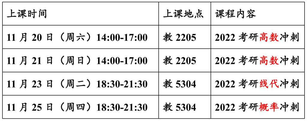 考研数学冲刺课表: