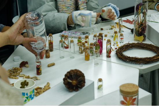 活动精心特制的感官瓶成为亮点。瓶内元素丰富多样,巧妙地触发了视觉、听觉、触觉等多元感官体验。同学们将各自捡拾的秋冬元素悉心置入瓶中,赋予其独特灵魂。
