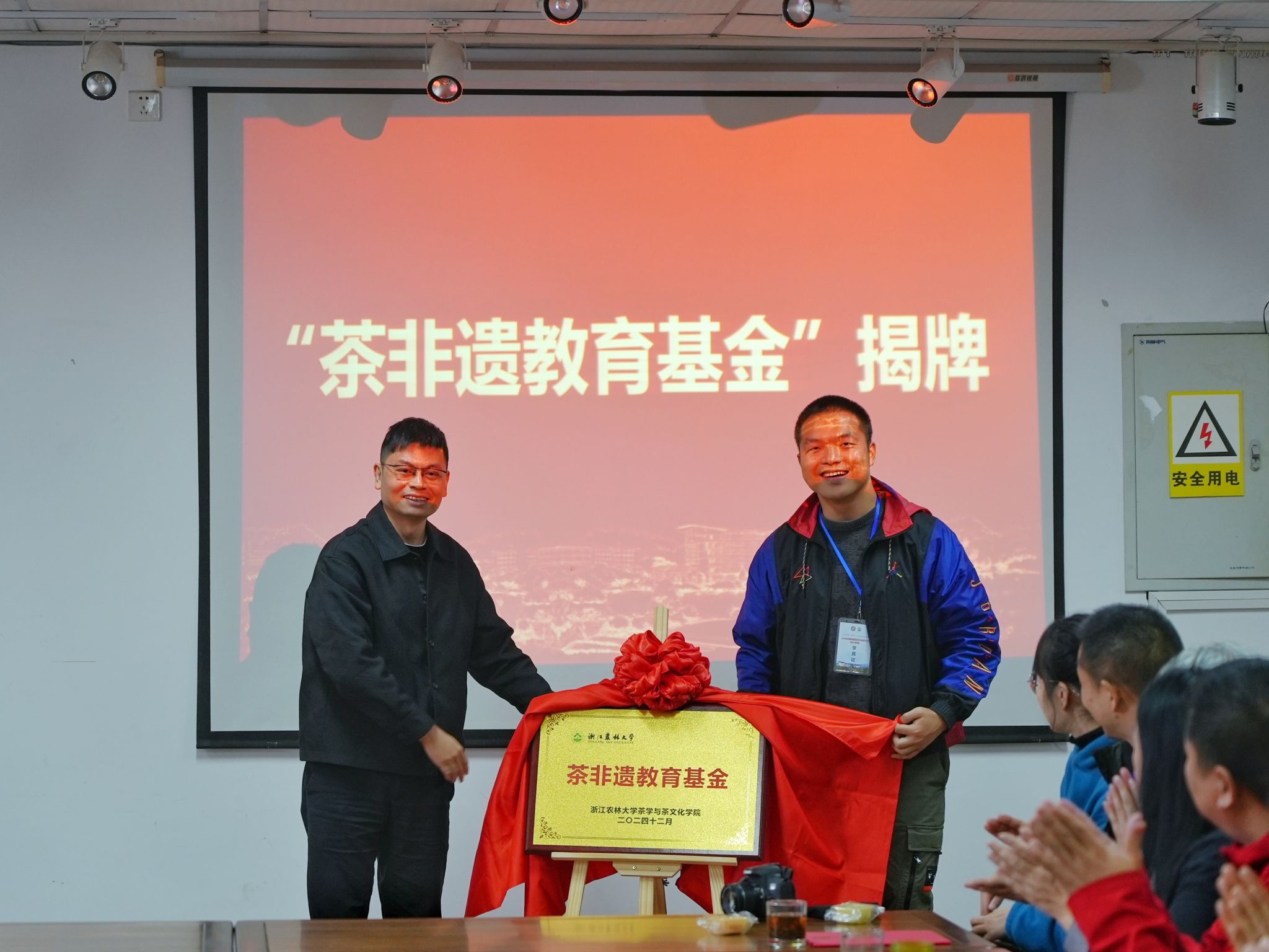 在仪式上,张路和许世钱共同为“茶非遗教育基金”揭牌,该基金的设立将为茶非遗保护传承、茶非遗专业人才培养注入新的动力。