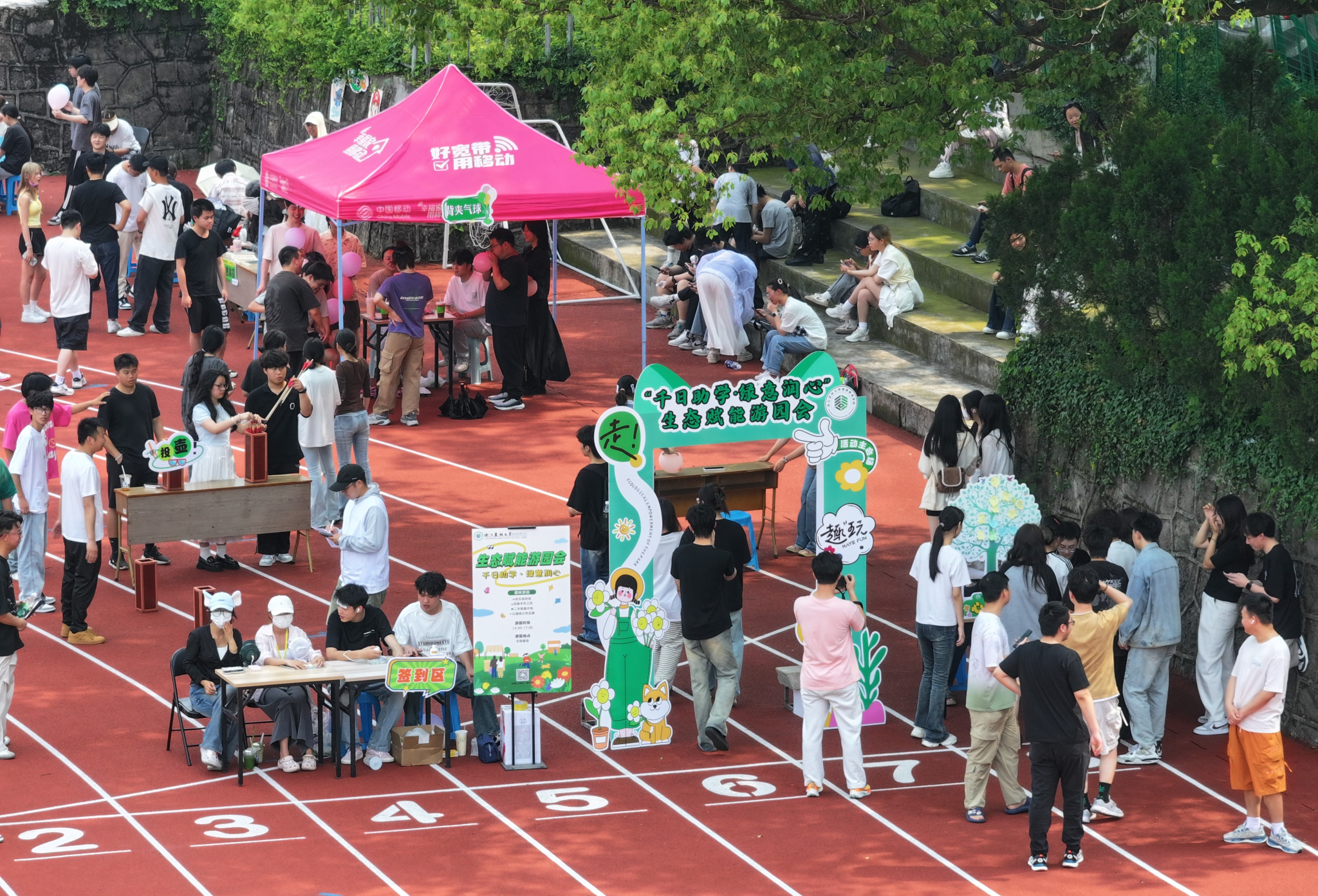 5月22日,继续教育学院“千日助学·绿意润心”生态赋能游园会在衣锦操场举行。本次游园会以“生态赋能”为核心,将心理健康教育与自然疗愈深度融合,吸引了近千名师生参与,现场氛围热烈。