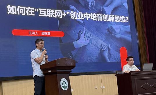金陈霄结合自身学习和工作经历,分享了在实践探索中如何培养综合能力与开放心态的经验,鼓励同学们跳出学生身份局限,学会以创业者的视角、企业家的思维去洞察问题、定义价值、整合资源。他从“互联网+”的内涵,近20年来中国互联网产业发展的进程,如何精准选题以及如何抓“创新点”这四大维度层层展开,系统阐述了培养创新创业思维的路径;结合评审经验,深入剖析了大赛获奖的案例,为在场师生提供了极具参考价值的实战范例。