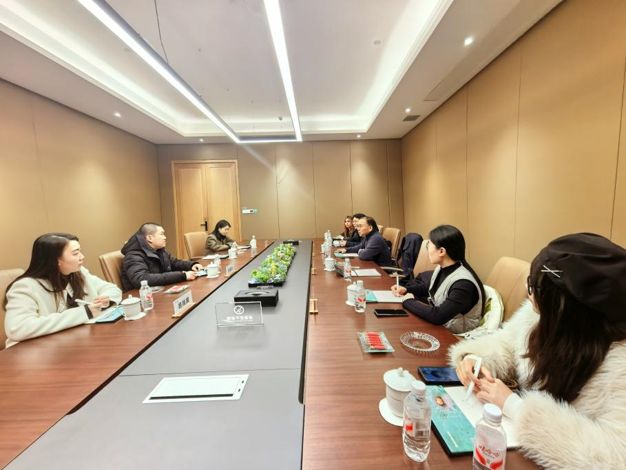 在杭州拾焰科技有限公司,调研团深入了解企业在数字内容、新媒体运营及文化出海等新兴业务领域的战略布局。校企双方就国际学生参与内容创作、跨境直播、文化传播项目等合作形式进行洽谈并交换意见。
