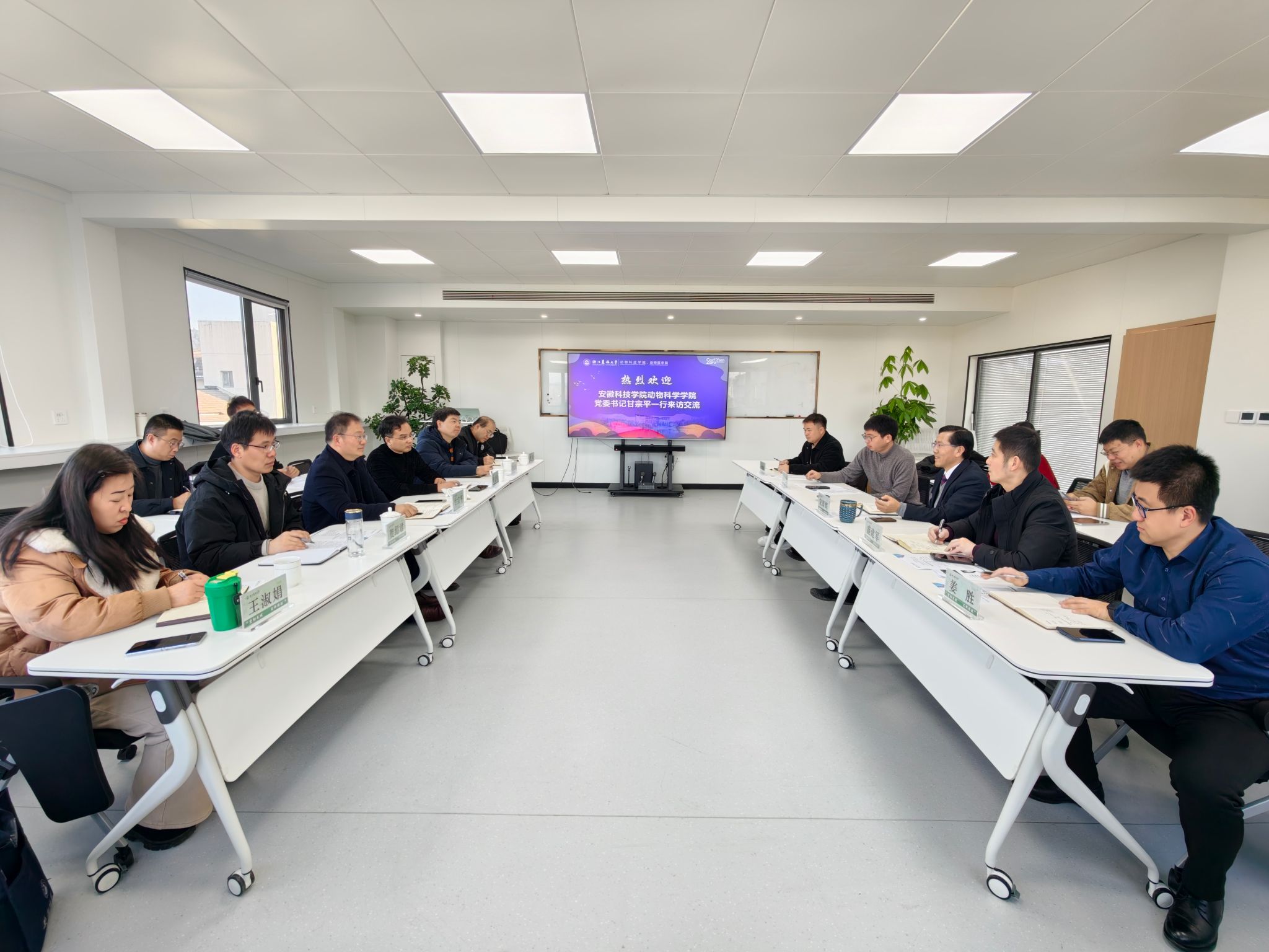 甘宗平介绍了安徽科技学院和动物科学学院在办学规模、专业设置、师资队伍和教学科研方面的基本情况,表达了与我校在学科专业建设、创新创业开展及青年教师培养等方面深化交流、互促共进的愿望。